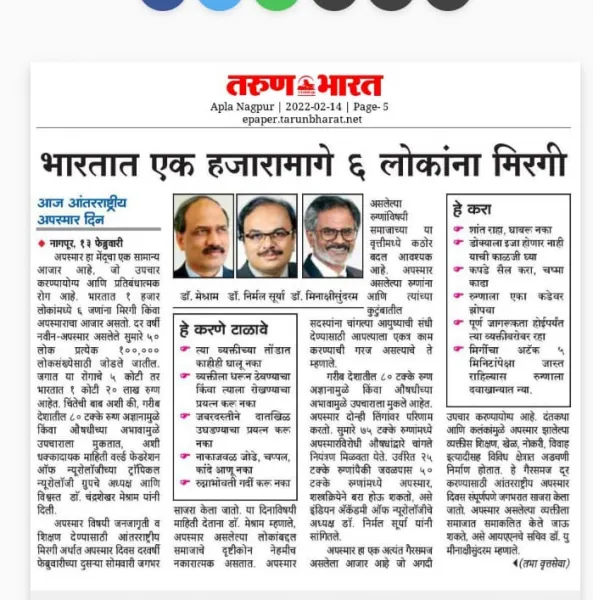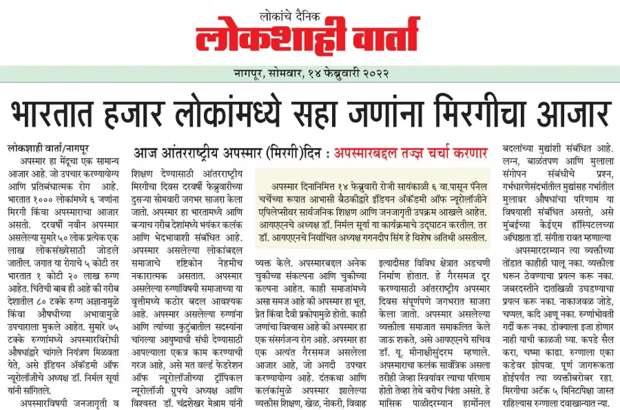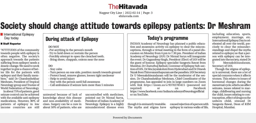The Indian Academy of Neurology organised a public education and awareness program in a virtual meeting on the occasion of International Epilepsy Day on 14th February 2022.